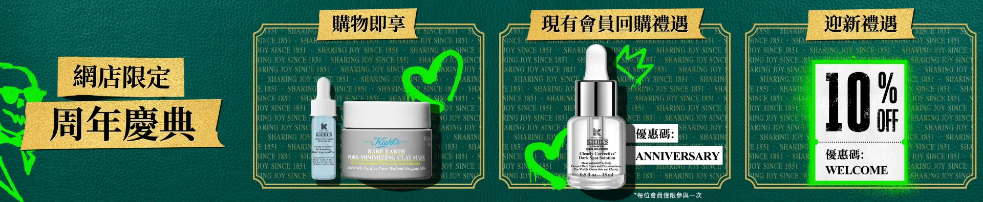 網頁中 (kiehls.com.hk) 提及的產品價格均由歐萊雅香港有限公司建議零售價格。網店授權零售商 ESHOPS.HK 擁有最終零售價決定權,最終零售價有可能會高於或低於建議零售價格。